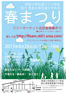 フリーマーケットは2015年04月26日10:00〜16:00に開催します。家庭内の不要品や手作り品などを「春まつりフリーマーケット」へ出店してみませんか。