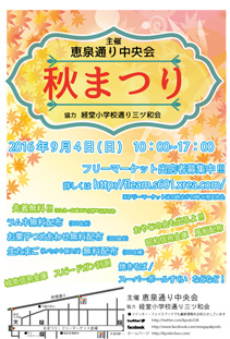 フリーマーケットは2016年09月4日10:00〜16:00に開催します。家庭内の不要品や手作り品などを「秋まつりフリーマーケット」へ出店してみませんか。